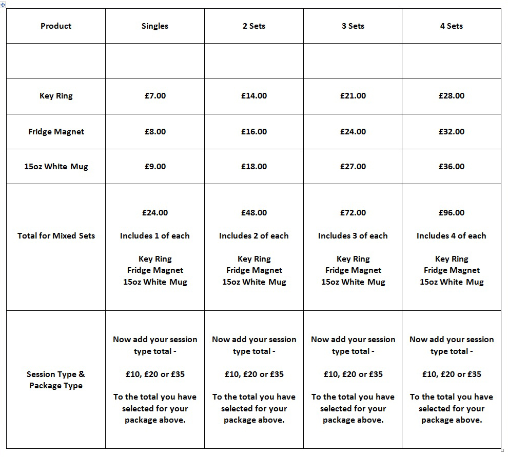 As well as the set packages below, you can also mix and match and even buy singles too!
